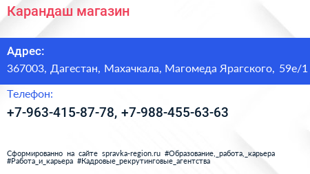 Карандаш, магазин по адресу 367003, Дагестан, Махачкала, Магомеда Ярагского, 59е/1 в дальнейшем Организация, размещена в следующих категориях: