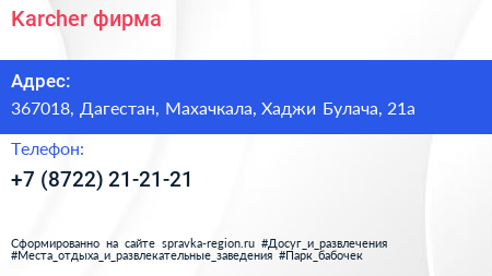 Karcher, фирма по адресу 367018, Дагестан, Махачкала, Хаджи Булача, 21а в дальнейшем Организация, размещена в следующих категориях: