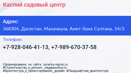 Каспий, садовый центр по адресу 368304, Дагестан, Махачкала, Амет-Хана Султана, 54/3 в дальнейшем Организация, размещена в следующих категориях: