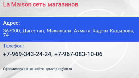La Maison, сеть магазинов по адресу 367000, Дагестан, Махачкала, Ахмата-Хаджи Кадырова, 74 в дальнейшем Организация, размещена в следующих категориях: