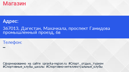 Магазин по адресу 367013, Дагестан, Махачкала, проспект Гамидова промышленный проезд, 6в в дальнейшем Организация, размещена в следующих категориях: