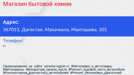 Магазин бытовой химии по адресу 367013, Дагестан, Махачкала, Манташева, 101 в дальнейшем Организация, размещена в следующих категориях: