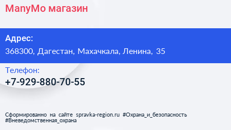 ManyMo, магазин по адресу 368300, Дагестан, Махачкала, Ленина, 35 в дальнейшем Организация, размещена в следующих категориях: