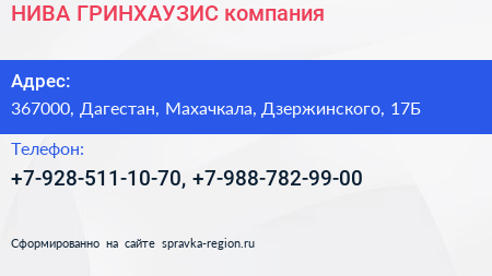 НИВА ГРИНХАУЗИС, компания по адресу 367000, Дагестан, Махачкала, Дзержинского, 17Б в дальнейшем Организация, размещена в следующих категориях: