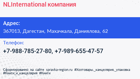 NLInternational, компания по адресу 367013, Дагестан, Махачкала, Даниялова, 62 в дальнейшем Организация, размещена в следующих категориях:
