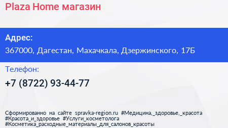 Plaza Home, магазин по адресу 367000, Дагестан, Махачкала, Дзержинского, 17Б в дальнейшем Организация, размещена в следующих категориях: