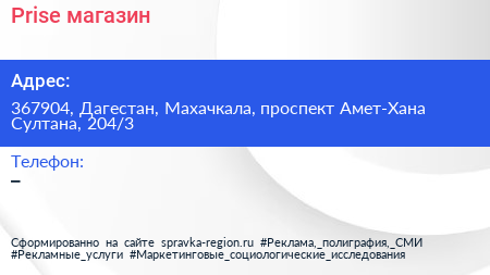 Prise, магазин по адресу 367904, Дагестан, Махачкала, проспект Амет-Хана Султана, 204/3 в дальнейшем Организация, размещена в следующих категориях: