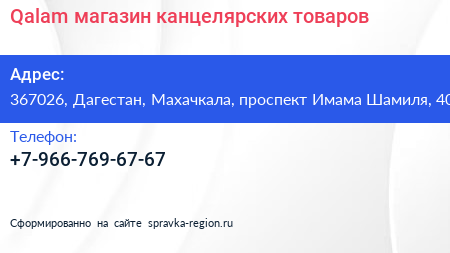 Qalam, магазин канцелярских товаров по адресу 367026, Дагестан, Махачкала, проспект Имама Шамиля, 40 в дальнейшем Организация, размещена в следующих категориях: