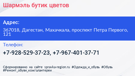 Шармэль, бутик цветов по адресу 367018, Дагестан, Махачкала, проспект Петра Первого, 121 в дальнейшем Организация, размещена в следующих категориях:
