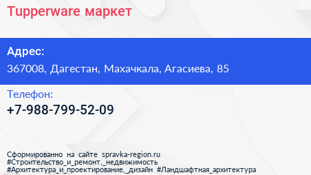 Tupperware, маркет по адресу 367008, Дагестан, Махачкала, Агасиева, 85 в дальнейшем Организация, размещена в следующих категориях:
