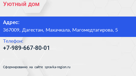 Уютный дом по адресу 367009, Дагестан, Махачкала, Магомедтагирова, 5 в дальнейшем Организация, размещена в следующих категориях: