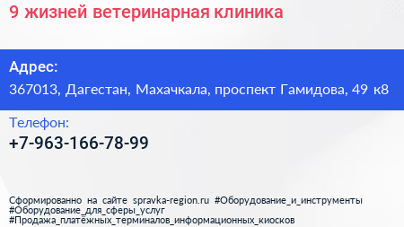 9 жизней, ветеринарная клиника по адресу 367013, Дагестан, Махачкала, проспект Гамидова, 49 к8 в дальнейшем Организация, размещена в следующих категориях: