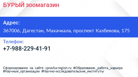 БУРЫЙ, зоомагазин по адресу 367006, Дагестан, Махачкала, проспект Казбекова, 175 в дальнейшем Организация, размещена в следующих категориях: