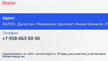 Enzoo по адресу 367015, Дагестан, Махачкала, проспект Имама Шамиля, 35 в дальнейшем Организация, размещена в следующих категориях: