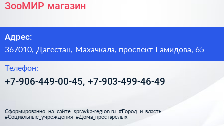 ЗооМИР, магазин по адресу 367010, Дагестан, Махачкала, проспект Гамидова, 65 в дальнейшем Организация, размещена в следующих категориях: