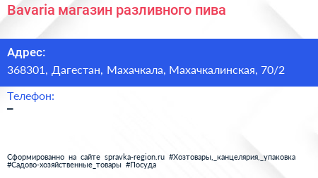 Bavaria, магазин разливного пива по адресу 368301, Дагестан, Махачкала, Махачкалинская, 70/2 в дальнейшем Организация, размещена в следующих категориях: