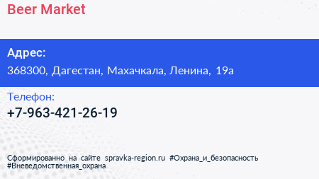 Beer Market по адресу 368300, Дагестан, Махачкала, Ленина, 19а в дальнейшем Организация, размещена в следующих категориях:
