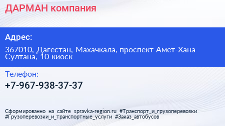 ДАРМАН, компания по адресу 367010, Дагестан, Махачкала, проспект Амет-Хана Султана, 10 киоск в дальнейшем Организация, размещена в следующих категориях: