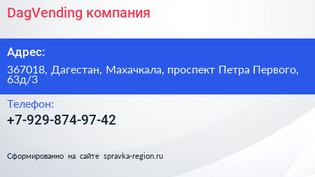 DagVending, компания по адресу 367018, Дагестан, Махачкала, проспект Петра Первого, 63д/3 в дальнейшем Организация, размещена в следующих категориях: