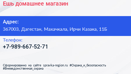 Ешь домашнее, магазин по адресу 367003, Дагестан, Махачкала, Ирчи Казака, 11Б в дальнейшем Организация, размещена в следующих категориях: