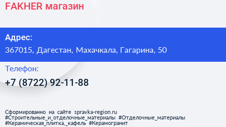 FAKHER, магазин по адресу 367015, Дагестан, Махачкала, Гагарина, 50 в дальнейшем Организация, размещена в следующих категориях: