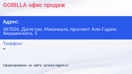 GORILLA, офис продаж по адресу 367026, Дагестан, Махачкала, проспект Али-Гаджи Акушинского, 5 в дальнейшем Организация, размещена в следующих категориях:
