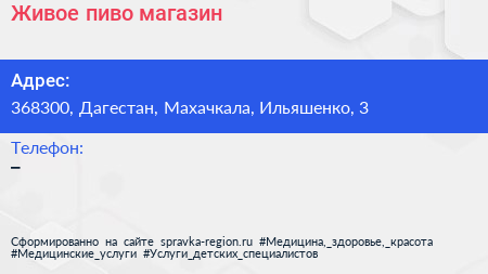 Живое пиво, магазин по адресу 368300, Дагестан, Махачкала, Ильяшенко, 3 в дальнейшем Организация, размещена в следующих категориях: