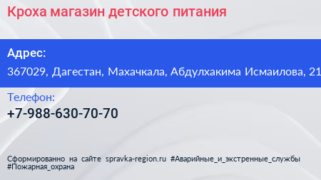 Кроха, магазин детского питания по адресу 367029, Дагестан, Махачкала, Абдулхакима Исмаилова, 21 в дальнейшем Организация, размещена в следующих категориях: