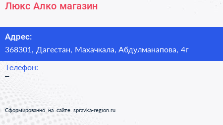 Люкс-Алко, магазин по адресу 368301, Дагестан, Махачкала, Абдулманапова, 4г в дальнейшем Организация, размещена в следующих категориях: