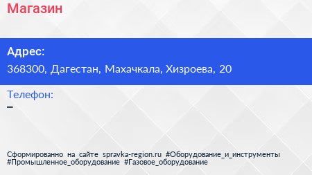 Магазин по адресу 368300, Дагестан, Махачкала, Хизроева, 20 в дальнейшем Организация, размещена в следующих категориях: