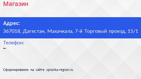 Магазин по адресу 367018, Дагестан, Махачкала, 7-й Торговый проезд, 15/1 в дальнейшем Организация, размещена в следующих категориях: