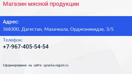 Магазин мясной продукции по адресу 368300, Дагестан, Махачкала, Орджоникидзе, 3/5 в дальнейшем Организация, размещена в следующих категориях: