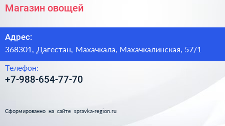 Магазин овощей по адресу 368301, Дагестан, Махачкала, Махачкалинская, 57/1 в дальнейшем Организация, размещена в следующих категориях: