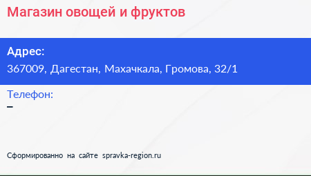 Магазин овощей и фруктов по адресу 367009, Дагестан, Махачкала, Громова, 32/1 в дальнейшем Организация, размещена в следующих категориях: