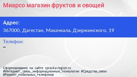 Миарсо, магазин фруктов и овощей по адресу 367000, Дагестан, Махачкала, Дзержинского, 19 в дальнейшем Организация, размещена в следующих категориях: