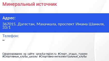 Минеральный источник по адресу 367015, Дагестан, Махачкала, проспект Имама Шамиля, 33/1 в дальнейшем Организация, размещена в следующих категориях: