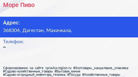 Море Пиво по адресу 368304, Дагестан, Махачкала, в дальнейшем Организация, размещена в следующих категориях: