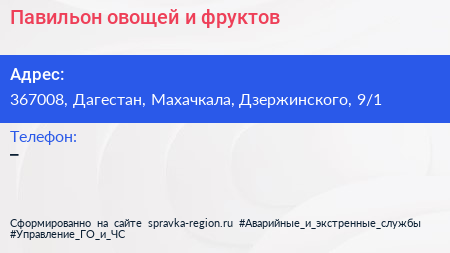 Павильон овощей и фруктов по адресу 367008, Дагестан, Махачкала, Дзержинского, 9/1 в дальнейшем Организация, размещена в следующих категориях: