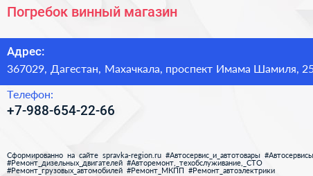 Погребок, винный магазин по адресу 367029, Дагестан, Махачкала, проспект Имама Шамиля, 25 в дальнейшем Организация, размещена в следующих категориях:
