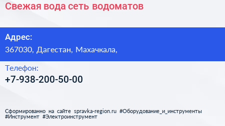 Свежая вода, сеть водоматов по адресу 367030, Дагестан, Махачкала, в дальнейшем Организация, размещена в следующих категориях: