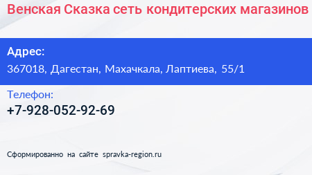 Венская Сказка, сеть кондитерских магазинов по адресу 367018, Дагестан, Махачкала, Лаптиева, 55/1 в дальнейшем Организация, размещена в следующих категориях:
