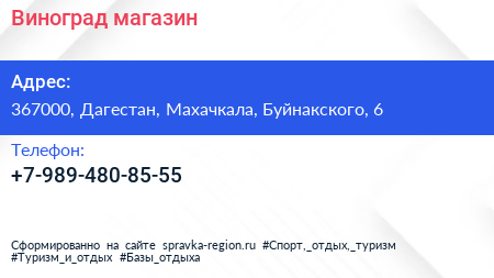 Виноград, магазин по адресу 367000, Дагестан, Махачкала, Буйнакского, 6 в дальнейшем Организация, размещена в следующих категориях: