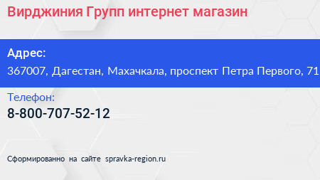 Вирджиния Групп, интернет-магазин по адресу 367007, Дагестан, Махачкала, проспект Петра Первого, 71 в дальнейшем Организация, размещена в следующих категориях: