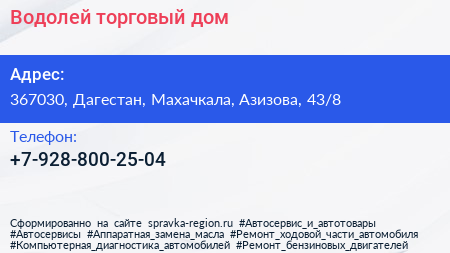 Водолей, торговый дом по адресу 367030, Дагестан, Махачкала, Азизова, 43/8 в дальнейшем Организация, размещена в следующих категориях: