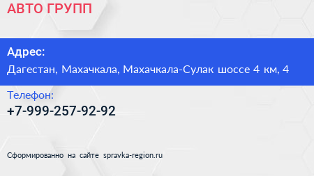АВТО ГРУПП по адресу Дагестан, Махачкала, Махачкала-Сулак шоссе 4 км, 4 в дальнейшем Организация, размещена в следующих категориях: