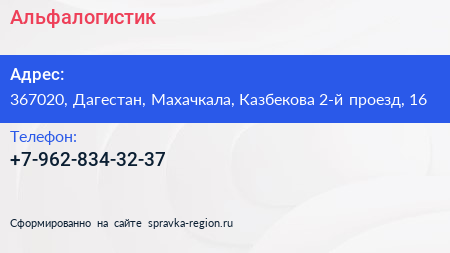 Альфалогистик по адресу 367020, Дагестан, Махачкала, Казбекова 2-й проезд, 16 в дальнейшем Организация, размещена в следующих категориях: