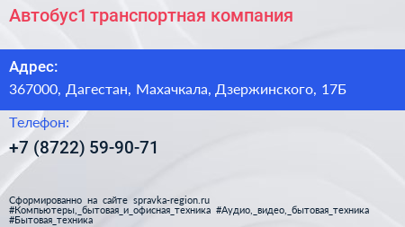 Автобус1, транспортная компания по адресу 367000, Дагестан, Махачкала, Дзержинского, 17Б в дальнейшем Организация, размещена в следующих категориях: