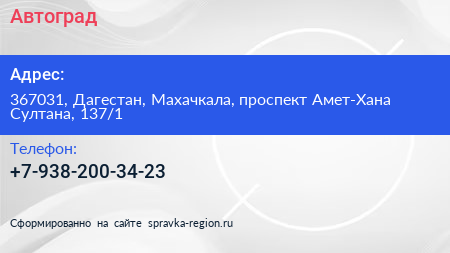 Автоград по адресу 367031, Дагестан, Махачкала, проспект Амет-Хана Султана, 137/1 в дальнейшем Организация, размещена в следующих категориях: