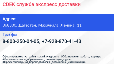 CDEK, служба экспресс-доставки по адресу 368300, Дагестан, Махачкала, Ленина, 11 в дальнейшем Организация, размещена в следующих категориях: