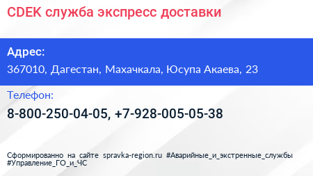 CDEK, служба экспресс-доставки по адресу 367010, Дагестан, Махачкала, Юсупа Акаева, 23 в дальнейшем Организация, размещена в следующих категориях: